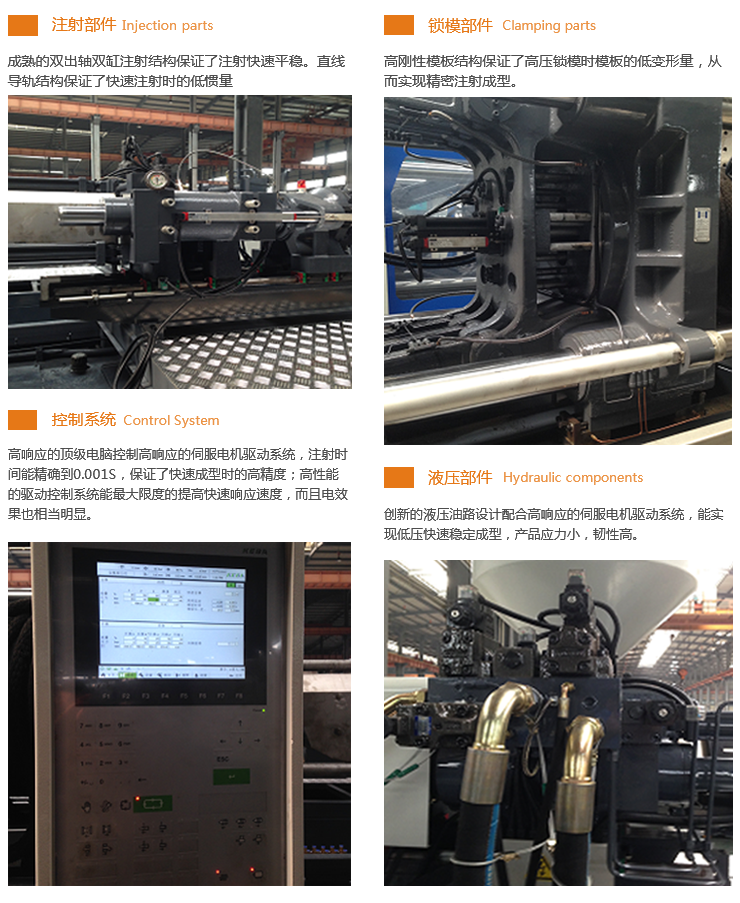 • GEKW/GS高速薄壁塑料包裝機(jī)裝載了高性能的伺服電機(jī)驅(qū)動(dòng)系統(tǒng)及優(yōu)化的液壓系統(tǒng),大幅度提高注射速度和注射精度,縮短了成型周期,提高生產(chǎn)效率。